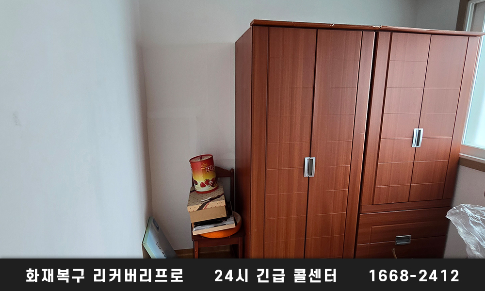 지금 보고 계신 사진 속의 자택은 화재사고를 경험하시게 된 이후 의정부시 화재청소를 위해 리커버리프로가 방문드린 케이스입니다. 작은 화재로 빠른 진화가 되어 큰 피해를 막을 수 있긴 하였지만 공간 내부 전체에 분진과 그을음이 남겨져 있어 이를 제거하기 위해 3일에 걸쳐 화재복원을 해드렸습니다. 연기 속 분진과 그을음은 아주 미세한 입지로 변했기에 이를 제거하기 위해서는 다수의 인력이 방문드려 가정 내 모든 물품들을 세척하는 과정을 거쳐야 합니다.